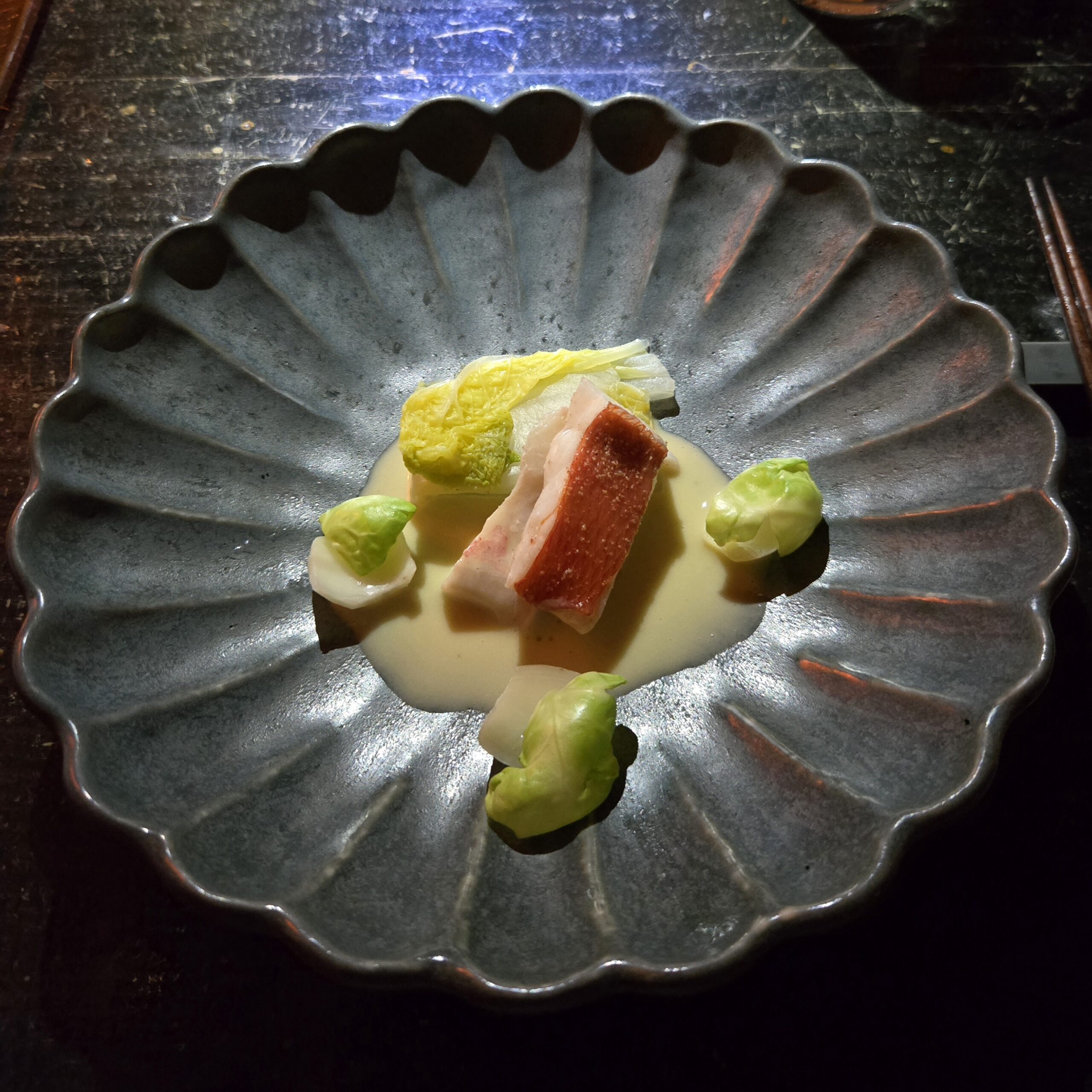 蒸し焼き金目鯛と白菜・百合根のバンブランソース